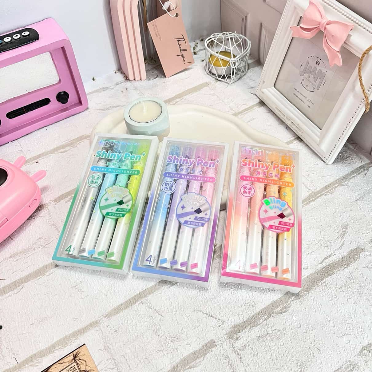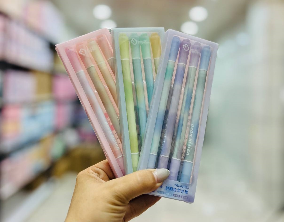 ماژیک هایلایت قلمی با رنگهای نود و مات در 3 طیف رنگی ست 4عددی