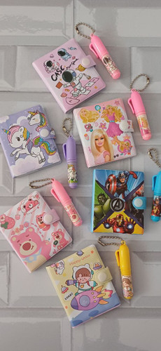 دفترچه مینی دوقلو با صفحات رنگی طرحدار و زنجیر آویز