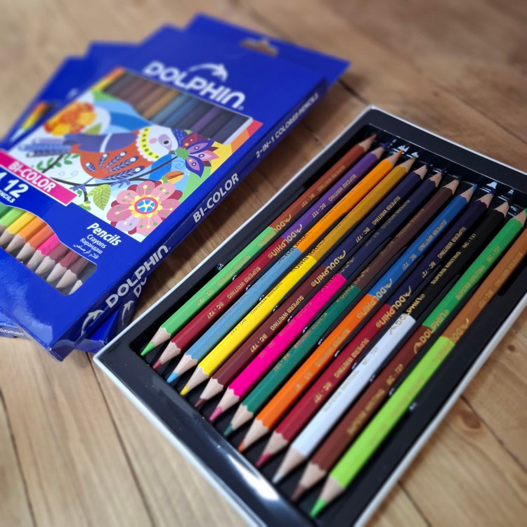 مداد رنگی ۲۴ رنگ ۱۲ عددی دو سر دلفین