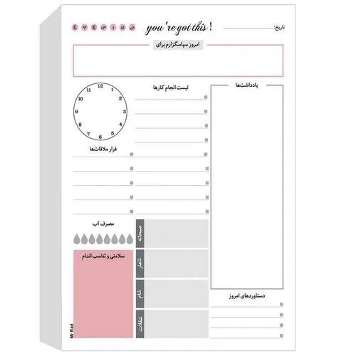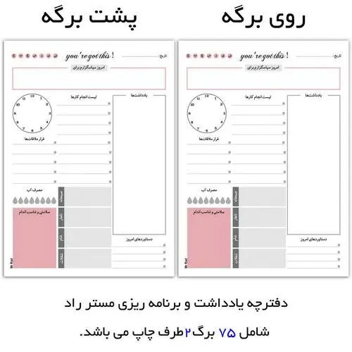 کاغذ یادداشت دفترچه ای مدل نوت پد طرح پلنر روزانه تایم باکس 100 برگ سایز آ5