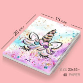 دفتر نقاشی سیمی در ۲ طرح زیبای و پر فروش یونیکورن و کیتی کیفیتی عالی، جلد منعطف سلفون دار