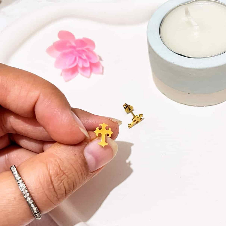 گل گوش استیل صلیب رنگ ثابت