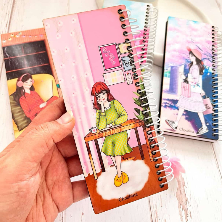 دفترچه تودولیست جلد چوبی دختر زیبا
