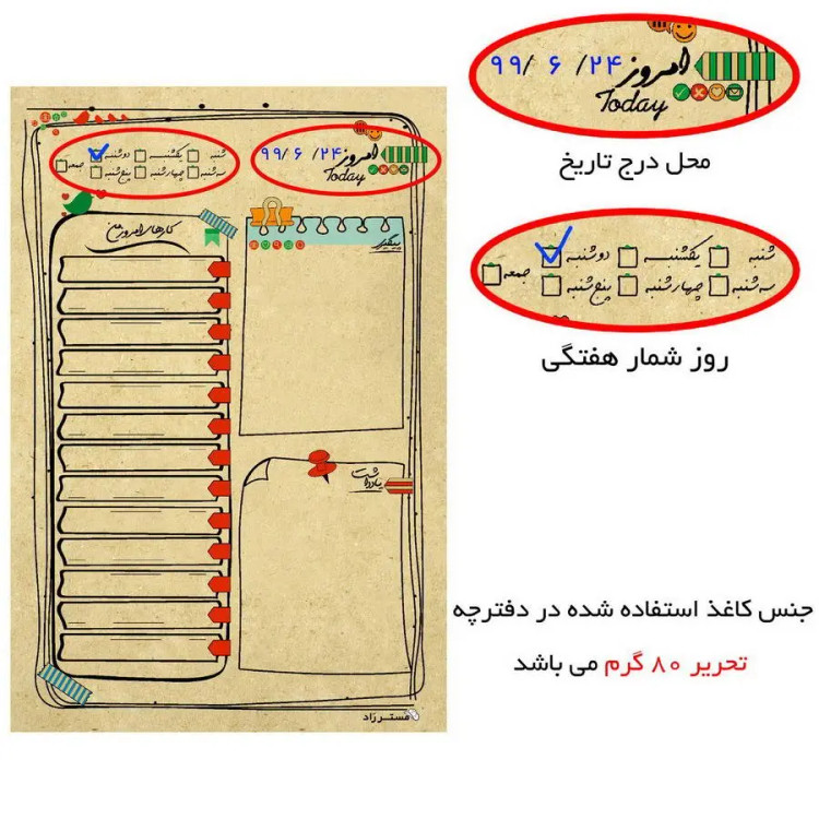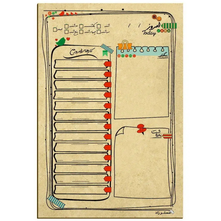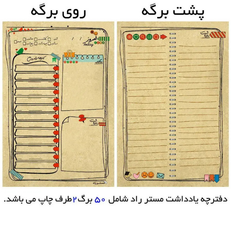 کاغذ یادداشت دفترچه ای طرح تو دولیست کارهای امروز من 50 عددی
