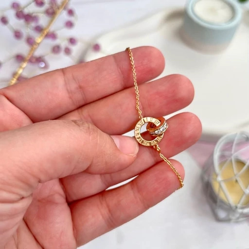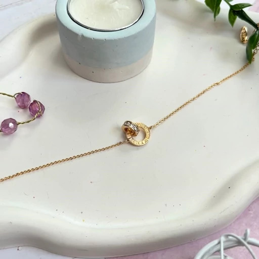دستبند رینگی نگین دار استیل رنگ ثابت ضد حساسیت