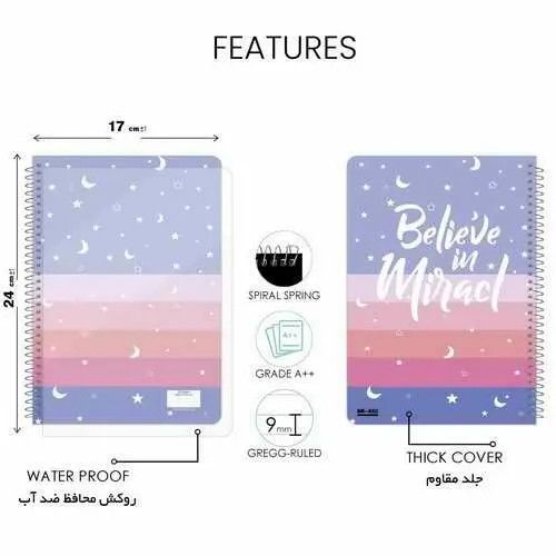 دفتر مشق مدل ماه و ستاره سیمی 50 برگ کیفیت کاغذ عالی