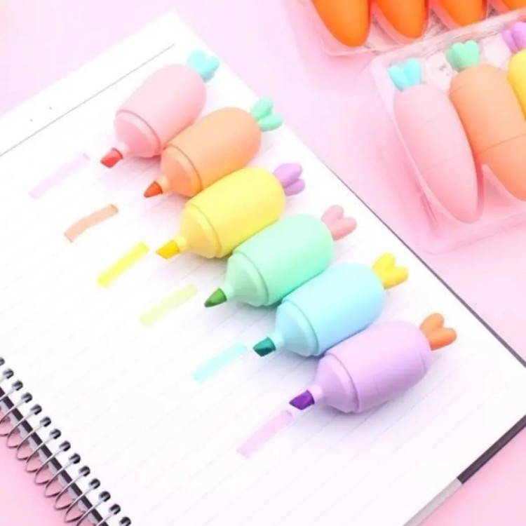 ماژیک هایلایت طرح هویج رنگی رنگهای پاستیلی موجود در ۶ رنگ به صورت تکی فروخته میشه.