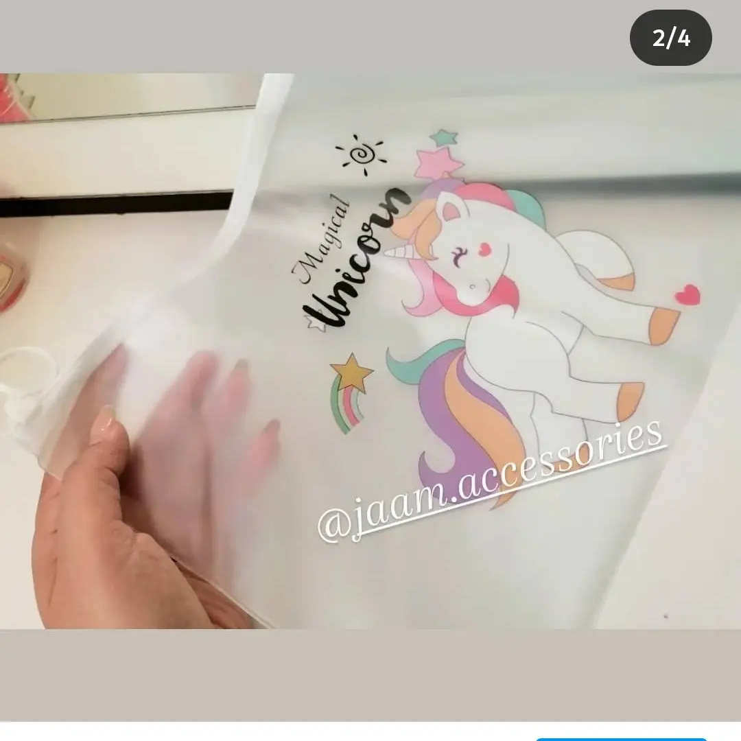 کاور نیمه شفاف طرح یونیکورن از جنس pvc قابل شستشو دارای زیپ کیپ سایز آ۴ کیفیت عالی قیمت هر عدد ۲۲۰۰۰ تومان