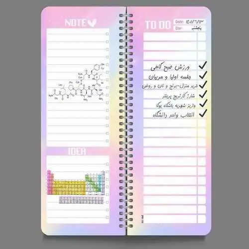 دفترچه های تودولیست سایز آ۶ در ۴ رنگ مختلف نارنجی، سبز، صورتی و سورمه ای دارای تاریخ، موضوع، پایان کار وظایف چک لیست یادآوری مکاتبات یادداشت ایده که همهی قسمتها دارای چک لیست میباشد و کاربردی برای منزل، محل کار، دانشگاه، مدرسه و ... . تو دو لیست 🔴سایز: ۲۰×۷ 🔴تعداد برگ: ۷۵ 🔴جنس جلد: منعطف دو رو سلفن مناسب برای یادداشت و چک لیست کارها 💯هرگز این جمله رو از کسی که تودولیست داره نمی شنوی:👇 «آخ! یادم رفت!»😐 تودولیست یا لیست انجام کار، یک راه ساده و عالی برای پیگیری انجام کارها بهخصوص کارهای مهم است که میتوان با ابزارهای قدرتمندی این کار را انجام داد. اما نحوهی نوشتن یک لیست بسیار مهم است. دلیل اهمیت هر کاری را یادداشت کنید . ✔کارهای کم ارزش و بدون ارزش را از لیست خود حذف کنید . ✔برای هر روز و هر هفتهی خود، یک لیست ایجاد کنید . ✔کارهای بزرگ را به چند کار کوچک تقسیمبندی کنید . ✔یک لیست واقعبینانه از کارهایی که انجام خواهید داد ایجاد کنید . هر سوالی درباره این محصول دارید از ما بپرسید