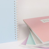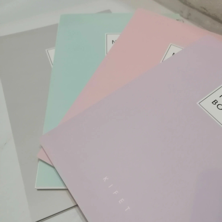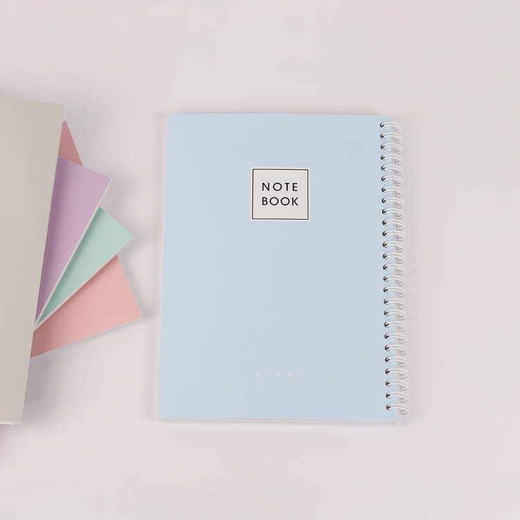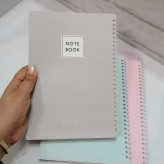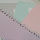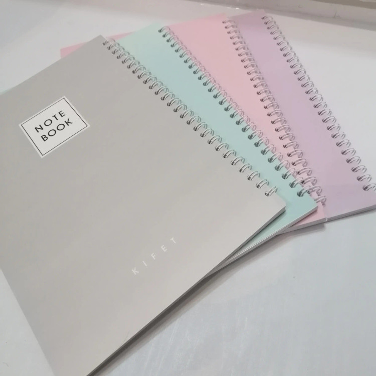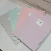 4 رنگ پاستیلی آبی، صورتی، بنفش و طوسی دارن، فنر دوبل، جلد مقوای گلاسه مات دارن