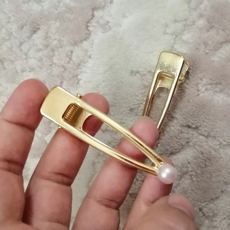 گیره های انبری فلزی آبکاری شده، و طراحی با مروارید سایز بزرگ دیگه جذابیت های اینکار از عکس مشخصه 😍😍😍