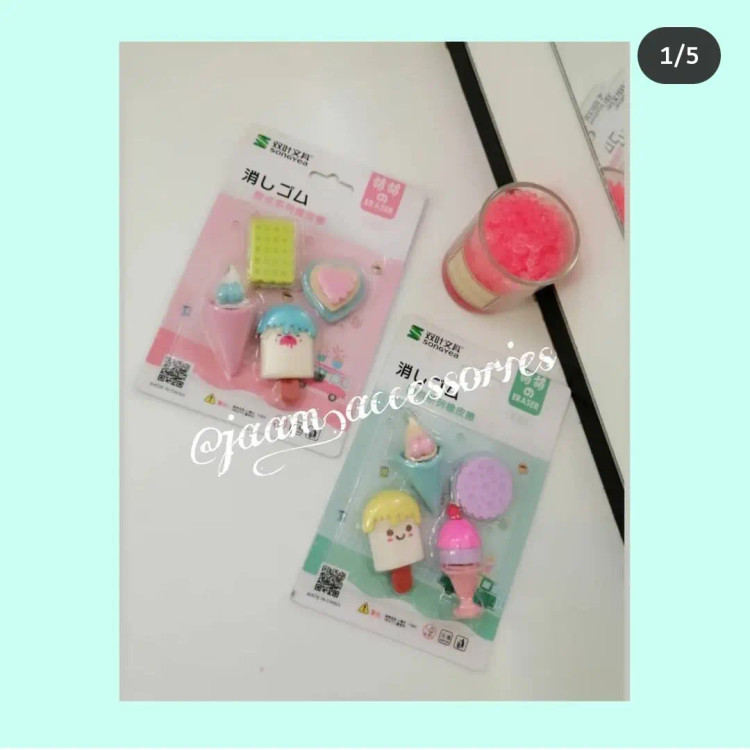 مشاهده محصولات مرتبطست پاککن های فانتزی طرح بستنی و دسر و بیسکوییت واقعا خوشگلن اینا در ۲ طرح آبی و صورتی بسته های ۴ عددی بچه ها اینارو خیلی دوست دارن و خوشحال میشن، جایزه های خوبی براشون میشه 😍 قیمت هر بسته ۴عددی ۱۸۰۰۰ تومان