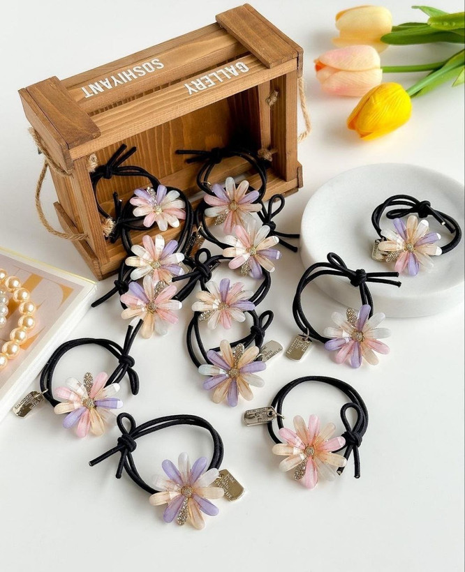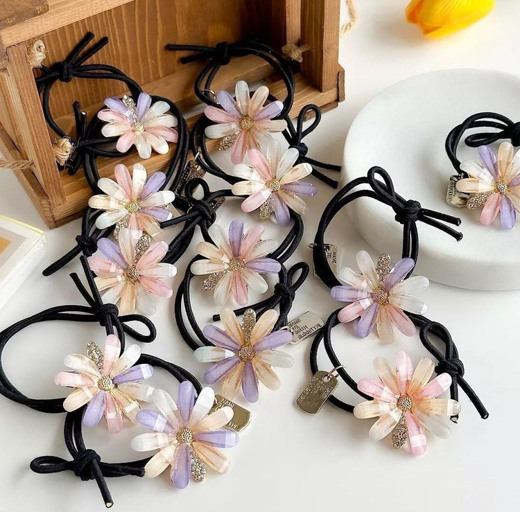 کش مو دوبل بابونه کریستالی پلاک دار سایز بزرگ