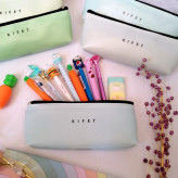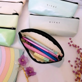 کیف ها چرم مصنوعی هستن و به صورت تک رنگ پاستیلی هستن، کاربردشون به عنوان جامدادی و کیف لوازم آرایش هستش. رنگ مورد نظرتون رو موجودی بگیرید