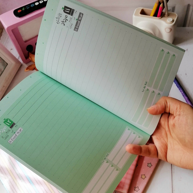 دیدن محصولات مرتبط📌تقویم ۴ فصل جلد شومیز ، باطرح طلاکوب هر فصل ۵۰ برگ داخل یک دفتر جداگانه (جمعا ۲۲۸ برگ) سایز A5 هرروز و جمعه ها مجزا داخل صفحات جداگانه برگه های رنگی برای هر فصل با رنگ متفاوت دارای تودولیست و صفحات برنامه ریزی برای هر ماه و هر فصل