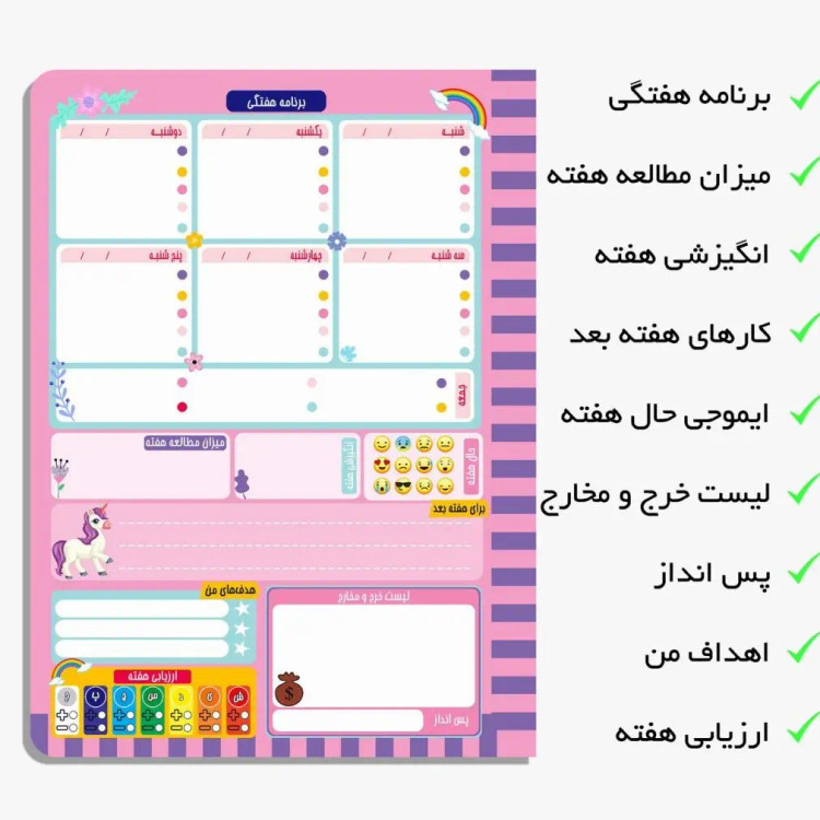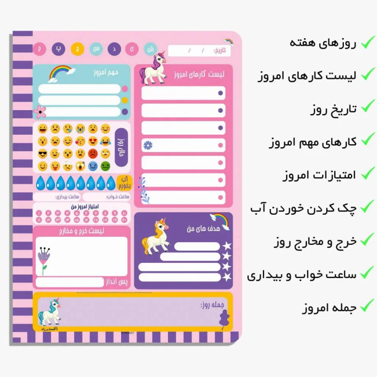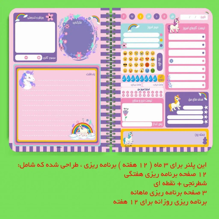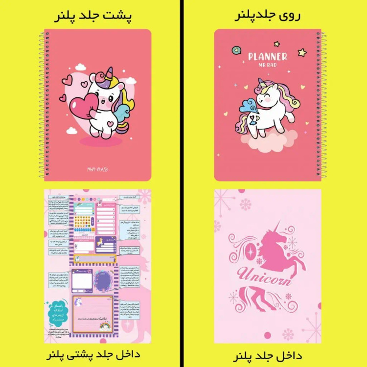 پلنر روزانه طرح یونیکورن کیوت 75 برگ جلد ضخیم منعطف دورو