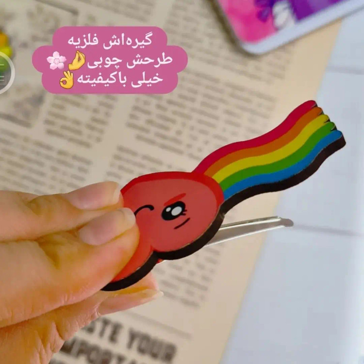 گیره انبری با رویه چوبی طرح رنگین کمان