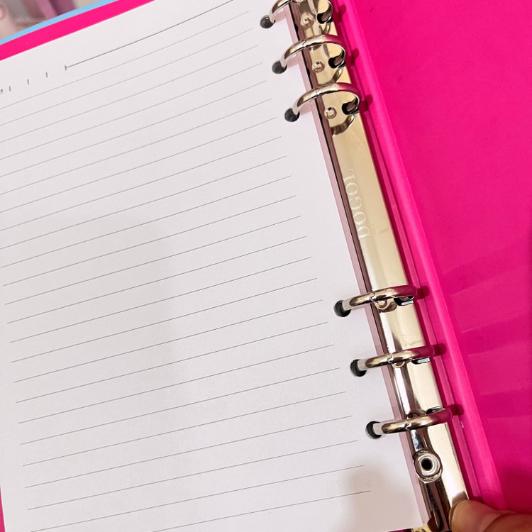 کلاسور سایز دفتر هست، و با قفل ۶ حلقه بزرگ فلزی، که بهمراه ۱۰۰ برگه کلاسور براتون میاد