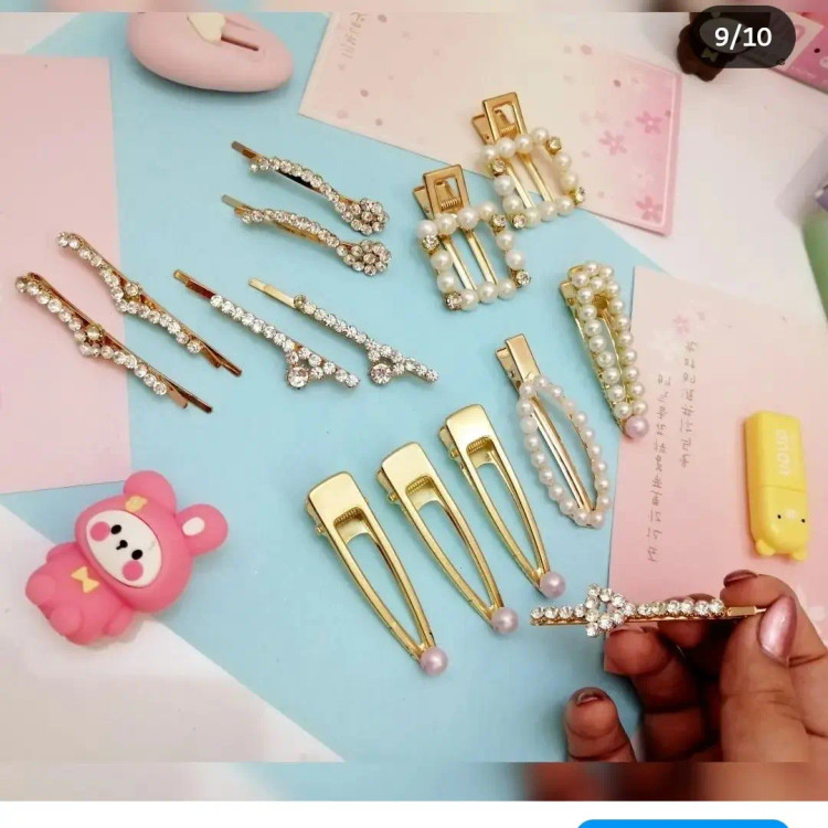 سنجاق فلزی گلد نگین دار پرکار و گیره انبری مروارید دار حراجی