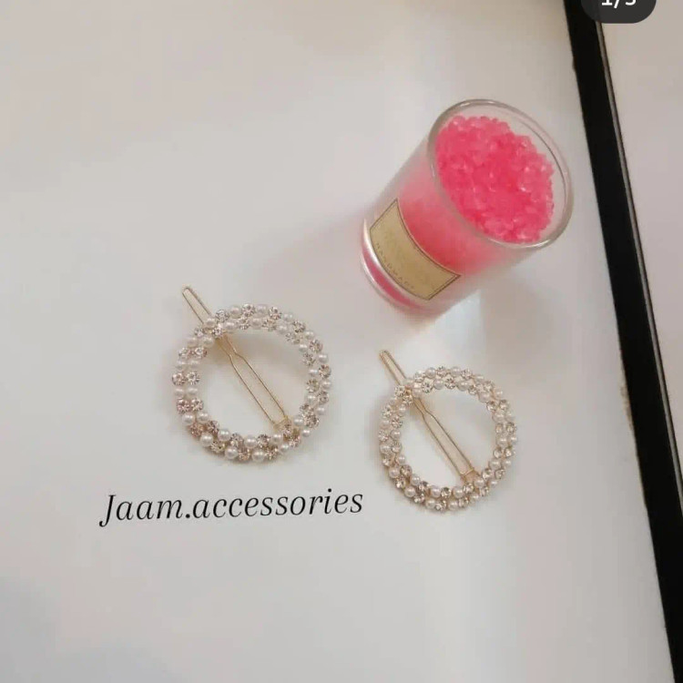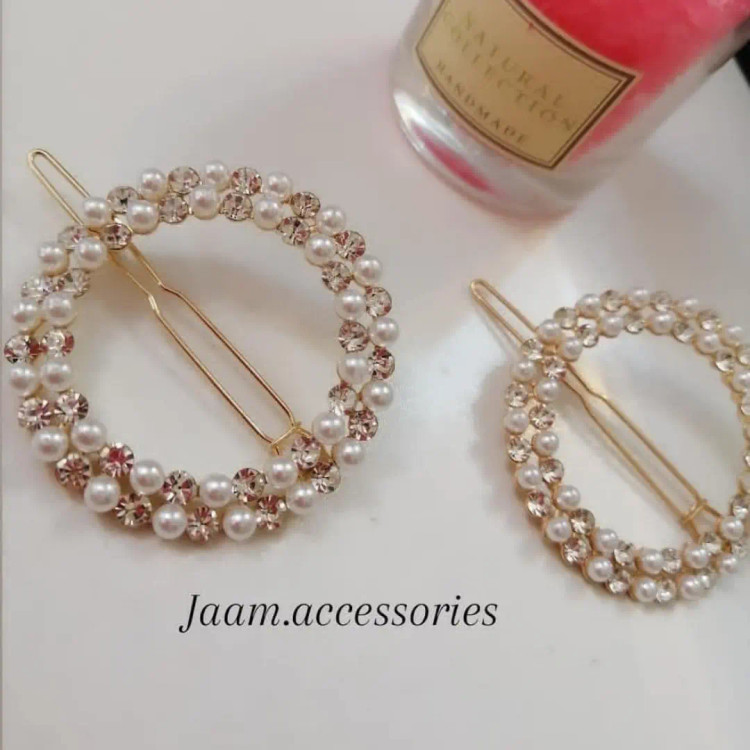 گیره های بغل مو مجلسی طرح دایره با نگین و مروارید😍 کیفیت بسیار عالی درخششش روی مو عالی هست.