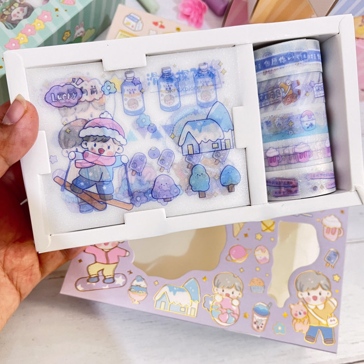پک چسب واشی و استیکر شاین دار پسر و خرس