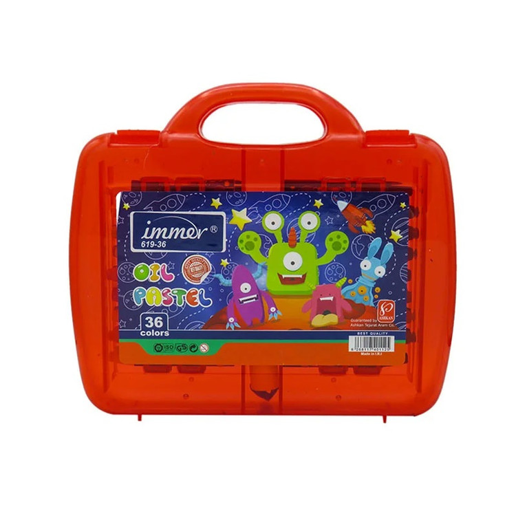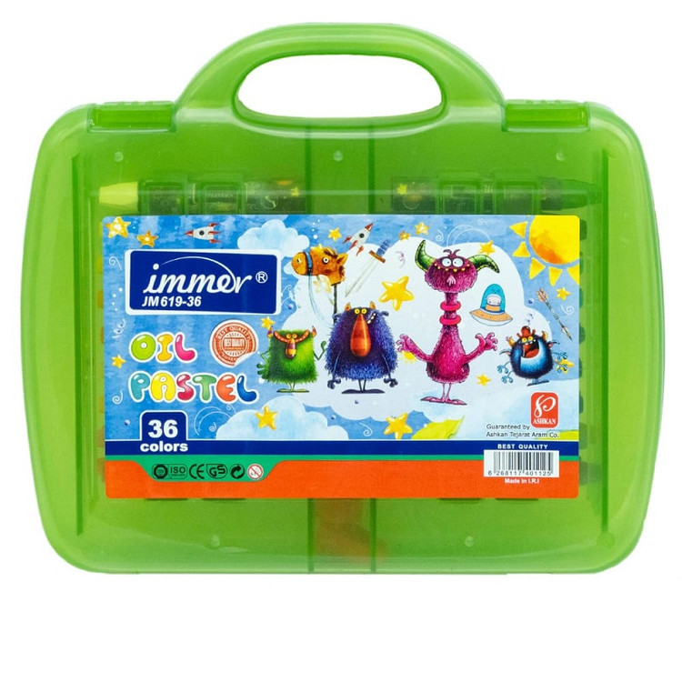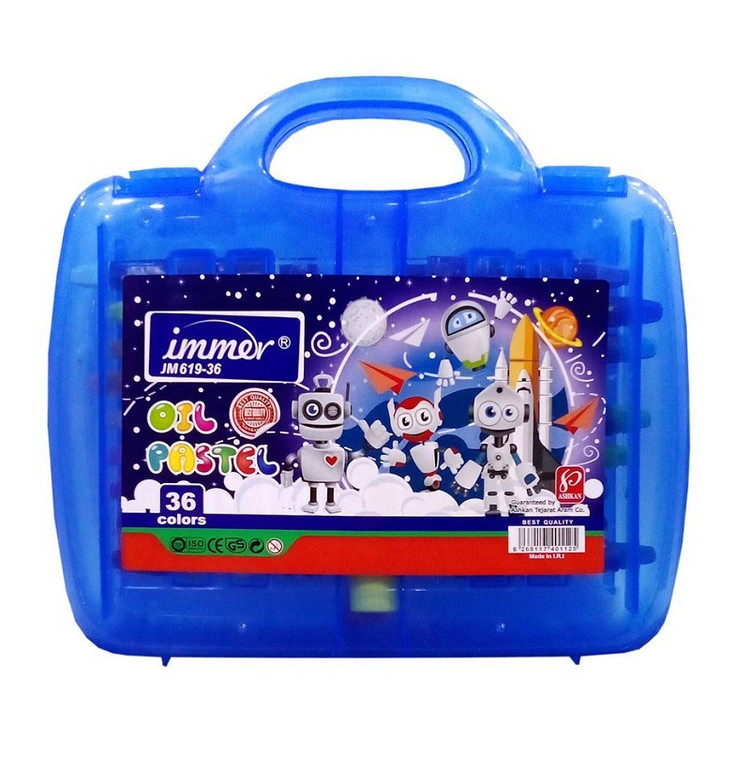 پاستل روغنی 36 رنگ کیفی با جعبه طلقی دسته دار JM619