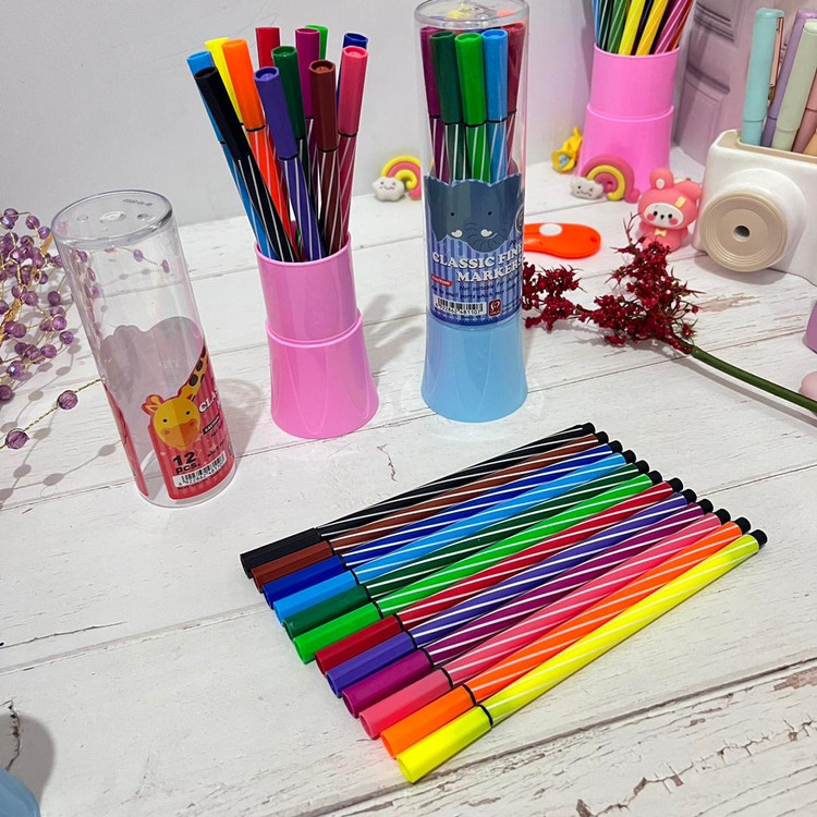 ماژیک نقاشی با نوک حرفه ای ۱۲ رنگ استوانه ای JM425